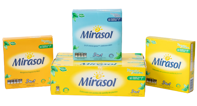 Mirasol marca líder en el mercado Salvadoreño, ofrece un producto con texturas suaves y ligeras con menos grasa saturada y libre de colesterol.